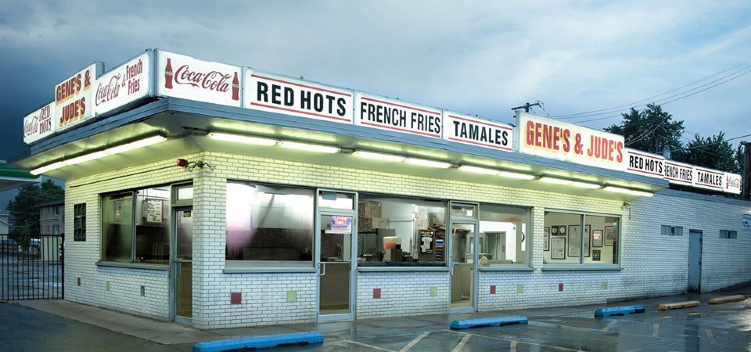 The dogs and fries alone were such a successful masterpiece that he took the other items off the menu and after a relocation in 1950 to River Grove Ill - Gene and Jude’s was in the making. The location in River Grove - although known as Gene and Jude’s - originally had no name on the outside of the building and was called River Road Hot Dogs by many locals.