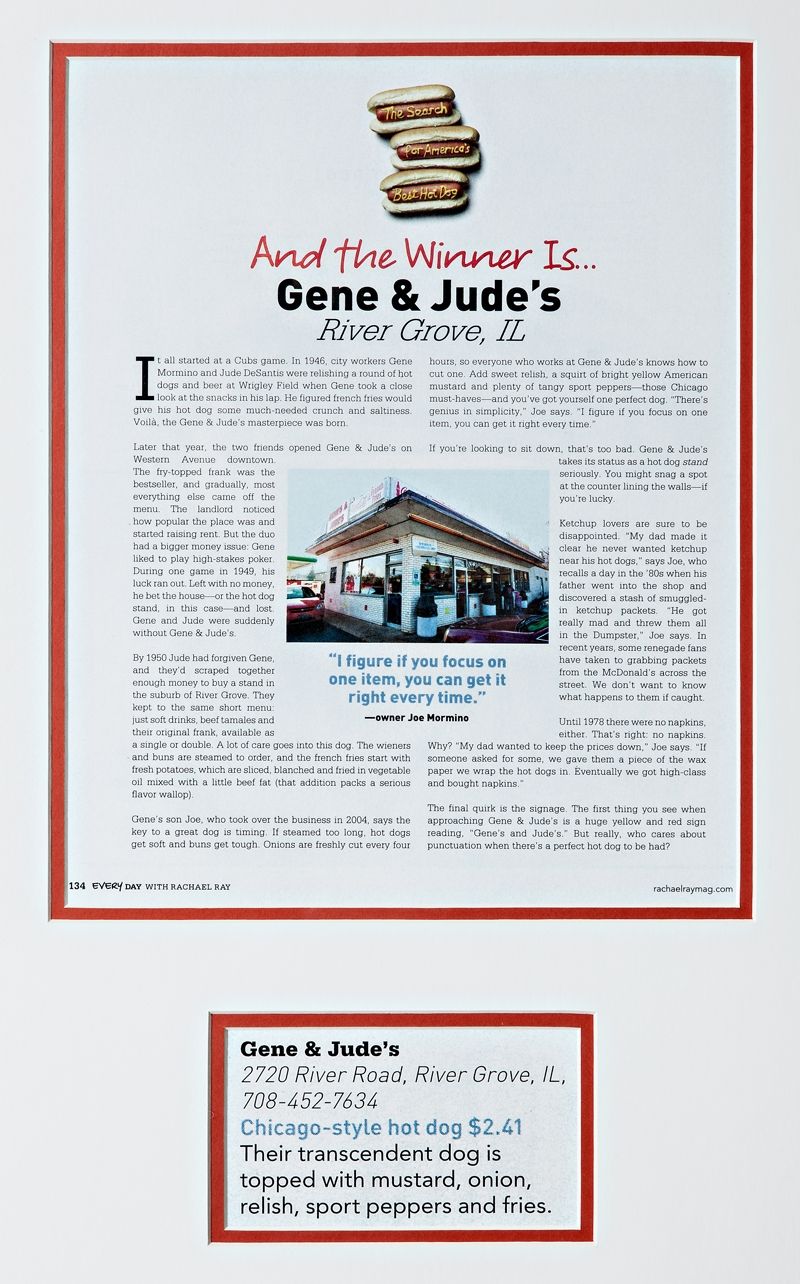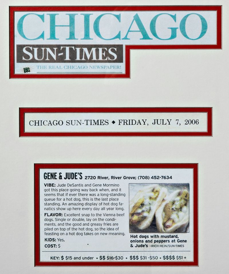 The sign outside actually says "Gene's and Jude's," but there's only one possessive in the official name, one of many quirks that distinguish this beloved hotdog stand, which has occupied the same parcel in River Grove since 1950. Gene & Jude's favors the "Depression Dog" style, which means that the only condiments to find their way onto their hot dogs are mustard, green relish, onions and sport peppers.